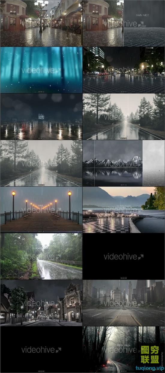 图穷联盟PS素材 » 逼真下雨场景窗户玻璃雨滴下落合成Rain Videohive