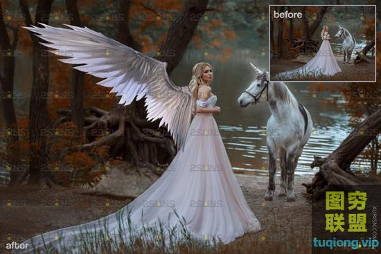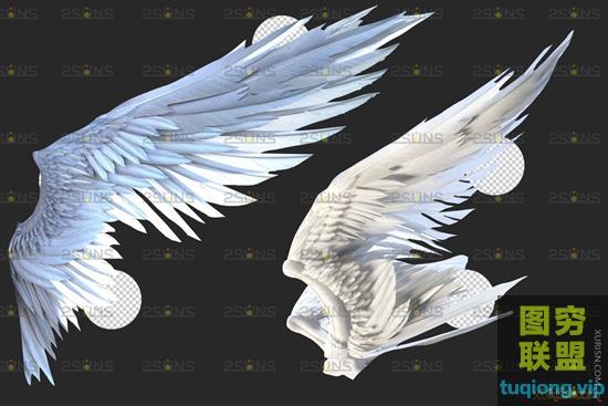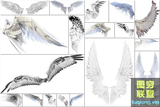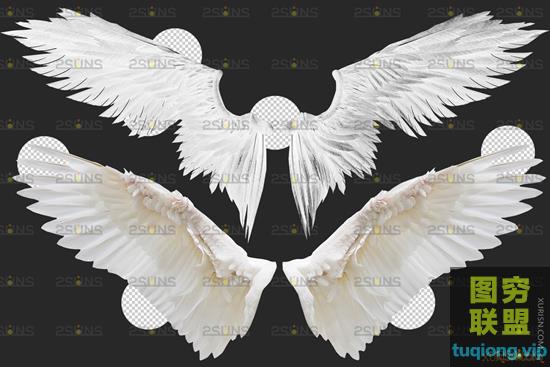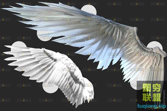 图穷联盟PS素材 » 20P超高清逼真的白色天使翅膀PNG透明合成素材