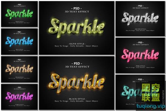 图穷联盟PS素材 » 9款3D立体闪光闪耀文字特效PSD模板3d sparkle text effect