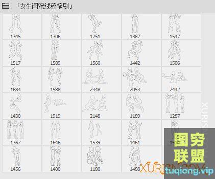 图穷联盟PS素材 » 29个女生闺蜜人体辅助线稿PS笔刷