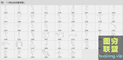 图穷联盟PS素材 » 51个人物运动人体姿势辅助线稿PS笔刷
