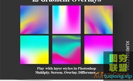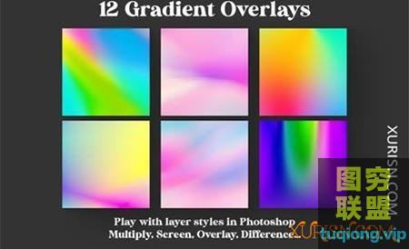 图穷联盟PS素材 » 12张高清彩虹彩色渐变照片叠加背景素材Color Gradient Overlays