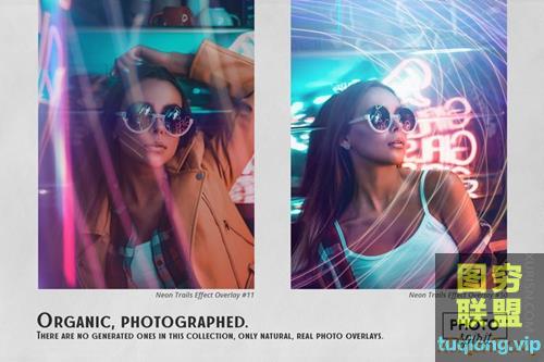 标题:55P 霓虹灯光线轨迹图片叠加素材Neon Trails Overlays Effect