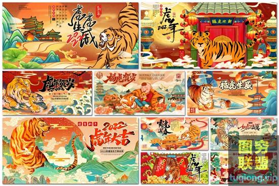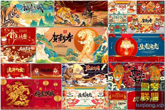 图穷联盟PS素材 » 63款2022虎年贺岁春节国潮插画横幅海报展板PSD模板设计素材