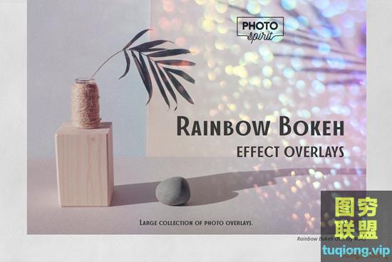 标题:50张4K高清彩虹散景效果叠加图片素材Rainbow Bokeh Effect Overlays