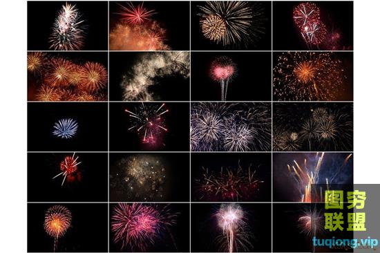 图穷联盟PS素材 » 41张5K高清节日烟花效果叠加图片素材