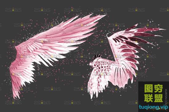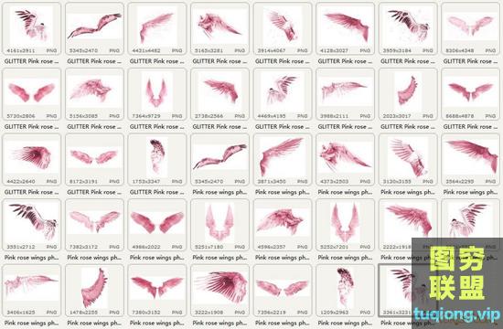 图穷联盟PS素材 » 39张高分辨率粉色天使翅膀透明PNG免抠合成叠加素材