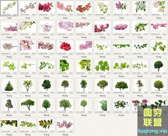 图穷联盟PS素材 » 58张超清户外摄影写真合成花朵树枝树木PNG透明图片素材