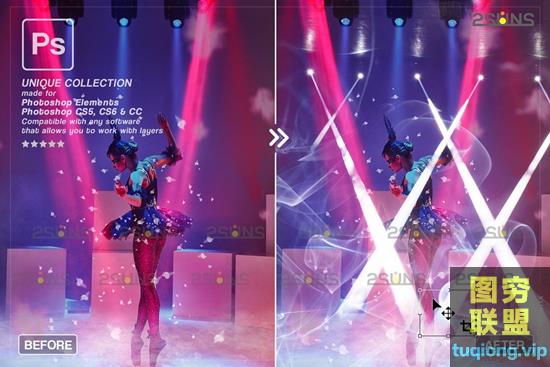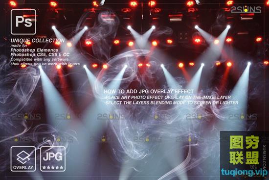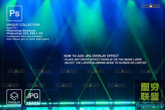 图穷联盟PS素材 » 28张创意酷炫舞台光效照片合成叠加素材Stage lights overlays