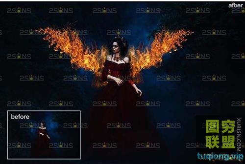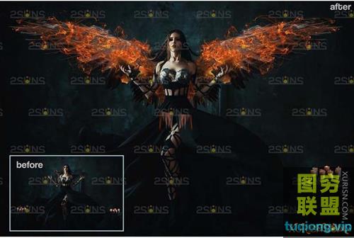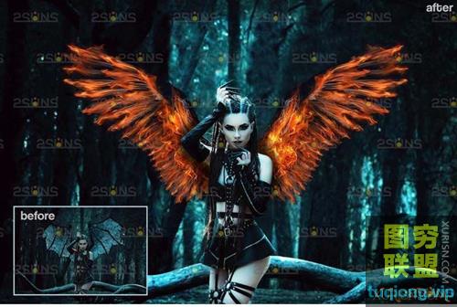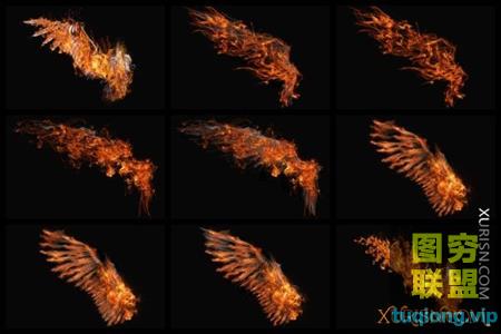 图穷联盟PS素材 » 9款高清火焰翅膀透明PNG图片合成素材