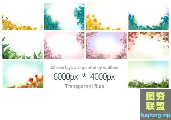 图穷联盟PS素材 » 42张彩绘花朵透明PNG照片叠加层图片素材