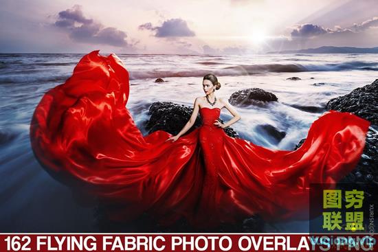 标题:162张高分辨率红色婚纱飘纱PNG透明合成叠加素材Flying Fabric Overlays Photoshop Overlay