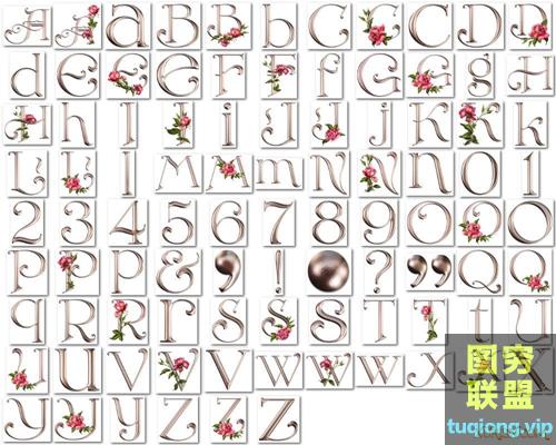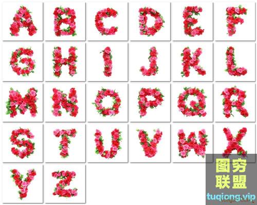 图穷联盟PS素材 » 120P 玫瑰花叶字母数字组合PNG透明素材