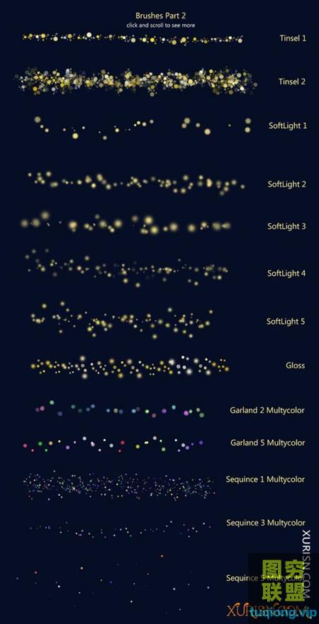 图穷联盟PS素材 » 30个魔法光效PS画笔Magic brushes-lights , bokeh , tinsel