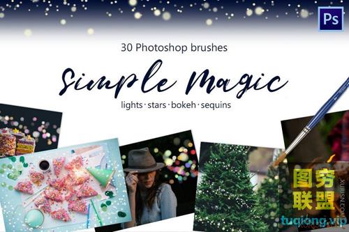 标题:30个魔法光效PS画笔Magic brushes -lights, bokeh, tinsel