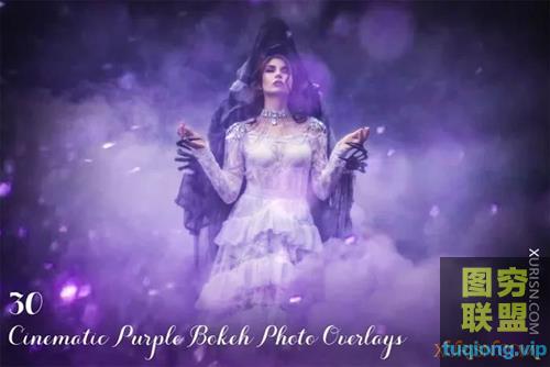 标题:30张魔幻紫色散景照片叠加素材30 Cinematic Purple Bokeh Overlays