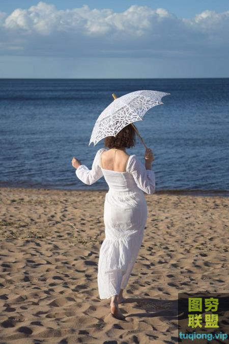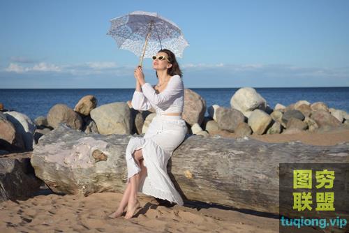 图穷联盟PS素材 » 14张白裙风情美女海边写真RAW原片