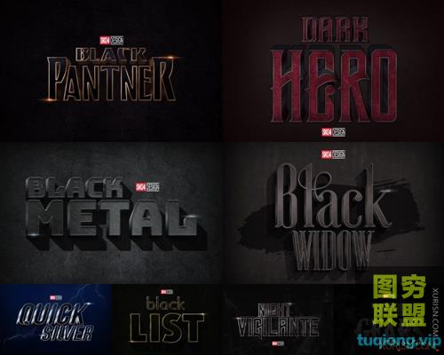 图穷联盟PS素材 » 8款黑金风格3D立体电影游字体特效样式PSD源文件PS样式