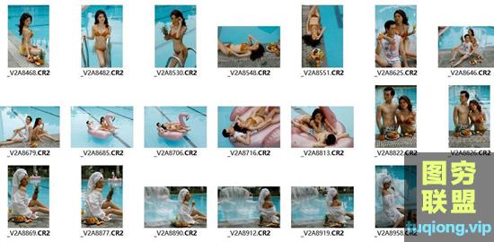 图穷联盟PS素材 » 20张性感比基尼情侣泳池写真RAW原片