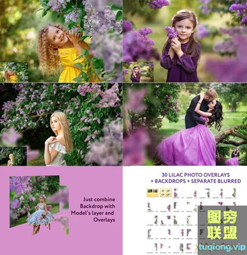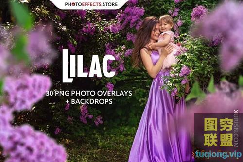图穷联盟PS素材 » 30张高清紫丁香照片前景叠加PNG透明素材Lilac Photo Overlays