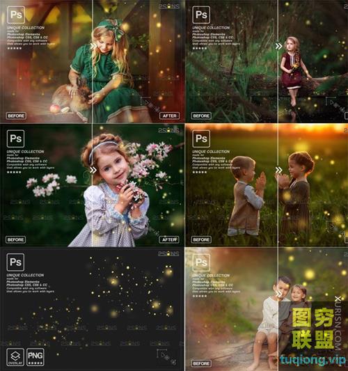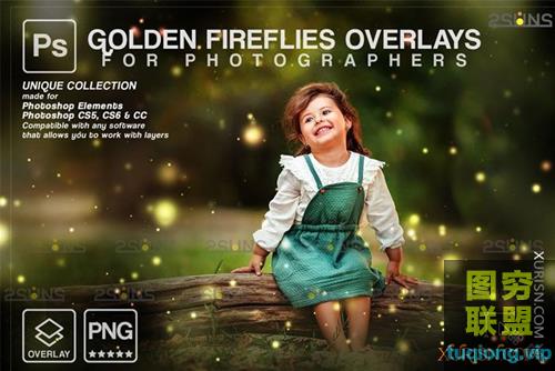 图穷联盟PS素材 » 10张高清金色萤火虫透明PNG照片叠加素材