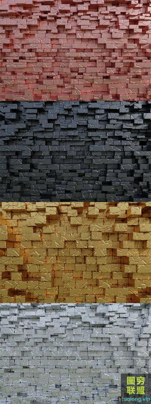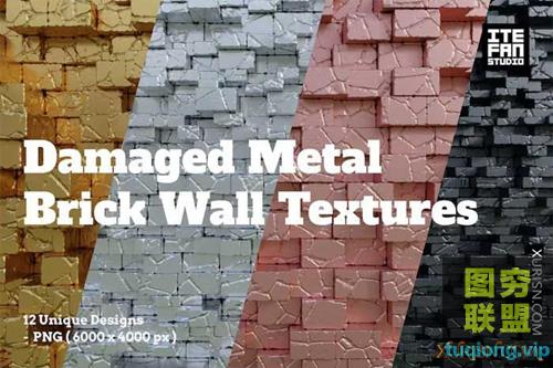 图穷联盟PS素材 » 12张高清立体损坏金属砖墙纹理图案素材