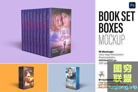 图穷联盟PS素材 » 18款书籍套装盒PSD样机模型