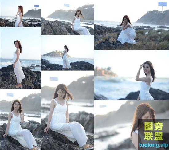 图穷联盟PS素材 » 11张清纯可爱白色长裙美女海边礁石写真RAW原片