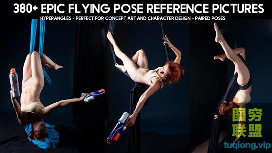 380 张高分辨率图像,带有飞行、浮动和动态姿势,用于您的插图、概念艺术和角色设计。