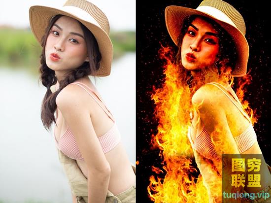 图穷联盟PS素材 » 人像浴火燃烧特效PS动作Fire Portrait Effect
