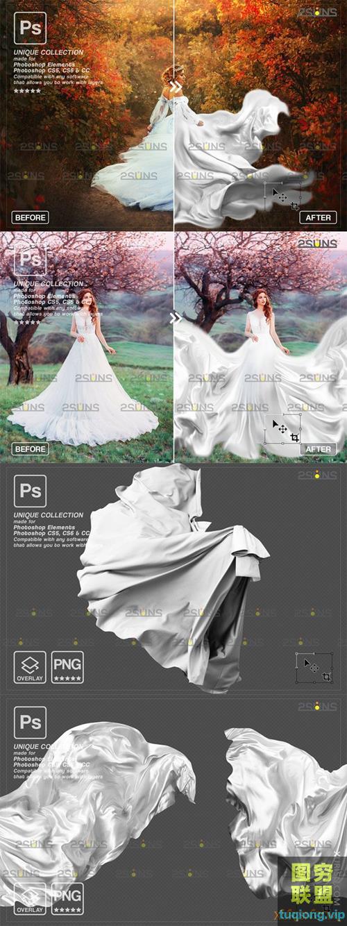 图穷联盟PS素材 » 157张白色飞舞飘动裙摆飘纱PNG透明合成素材