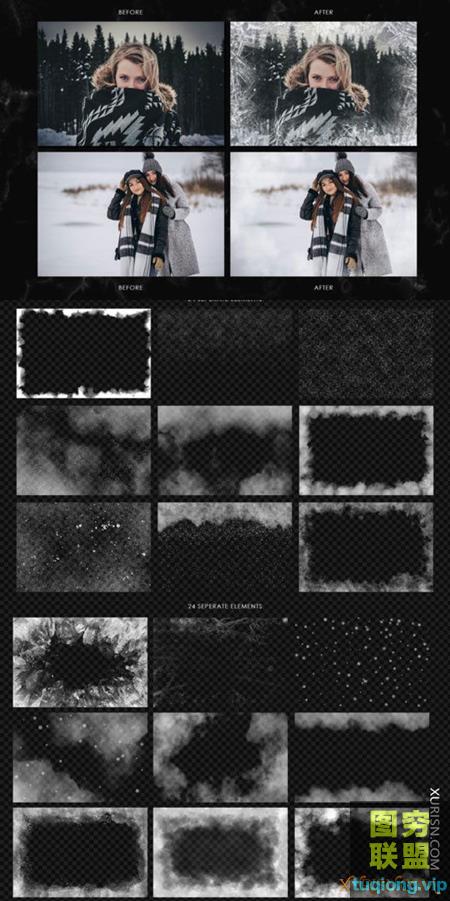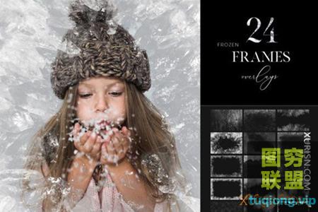 图穷联盟PS素材 » 24张冬天冰冻剪帖画框PNG透明图片素材