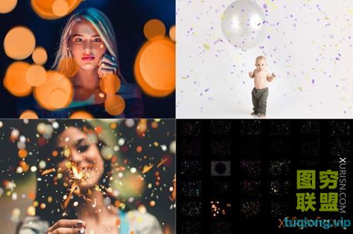 图穷联盟PS素材 » 32张梦幻彩色纸屑叠加透明PNG照片合成素材