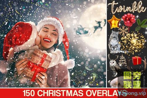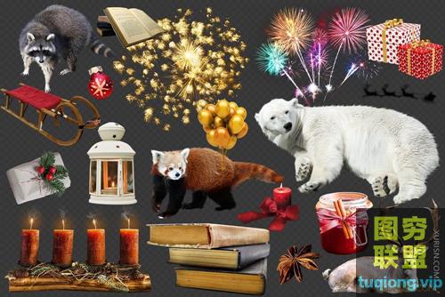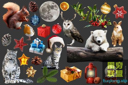 图穷联盟PS素材 » 150张高清圣诞节饰品动物边框元素PNG合成素材包