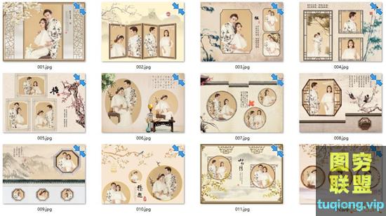 图穷联盟PS素材 » 古典中国风工笔画婚纱照相册模板PSD素材 12P