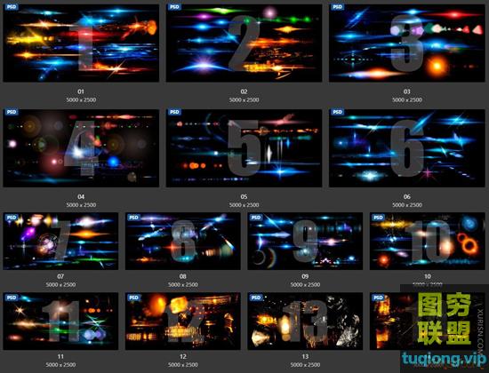 图穷联盟PS素材 » 超级灯光工厂-超现实炫目镜头光斑光线夜景特效PSD素材