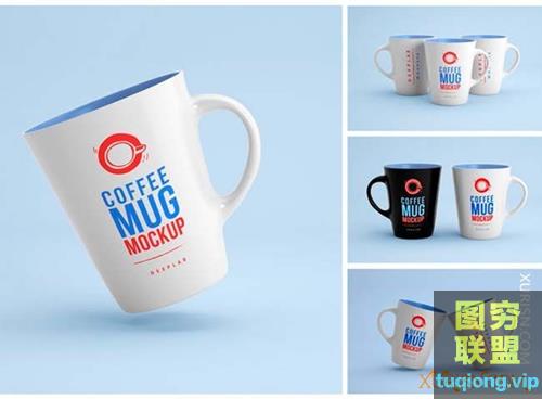 图穷联盟PS素材 » 4 PSD 不同角度咖啡杯样机模板Coffee Mug Mockups PSD