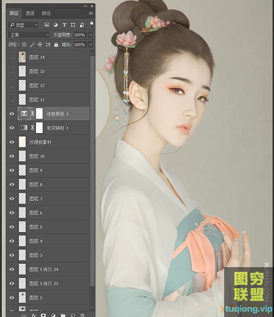 图穷联盟PS素材 » 麦子2019古风人像工笔画PS后期修图教程