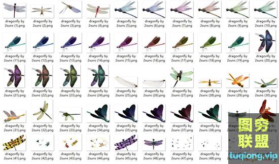 图穷联盟PS素材 » 50个高清蜻蜓PNG透明合成图层素材