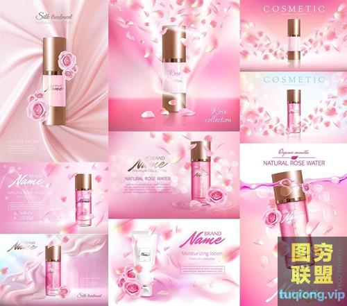 图穷联盟PS素材 » 9款粉色花瓣化妆品护肤品飘带女性AI矢量分层素材
