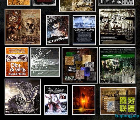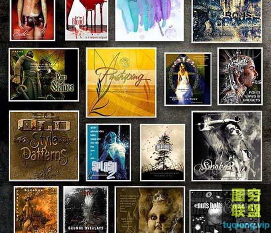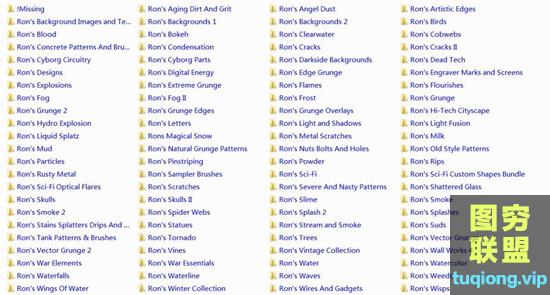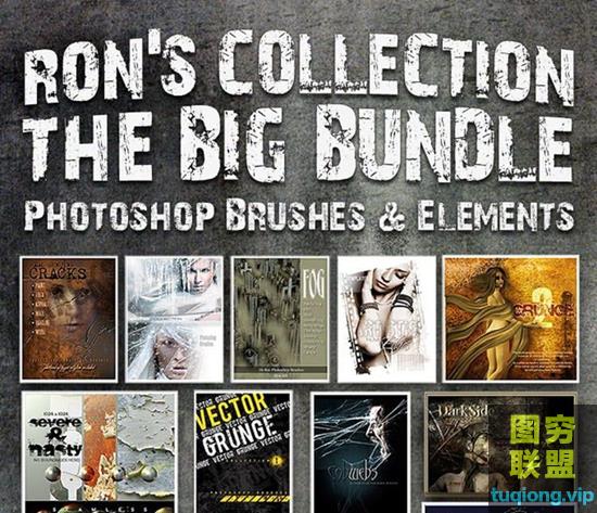 图穷联盟PS素材 » Rons系列笔刷 PS绘画设计笔刷 纹理原画 Ron\'s全系列97套