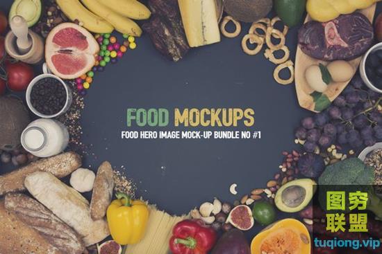 图穷联盟PS素材 » 27款西餐食物现场自定义实物样机沙拉、面包等PSD源文件
