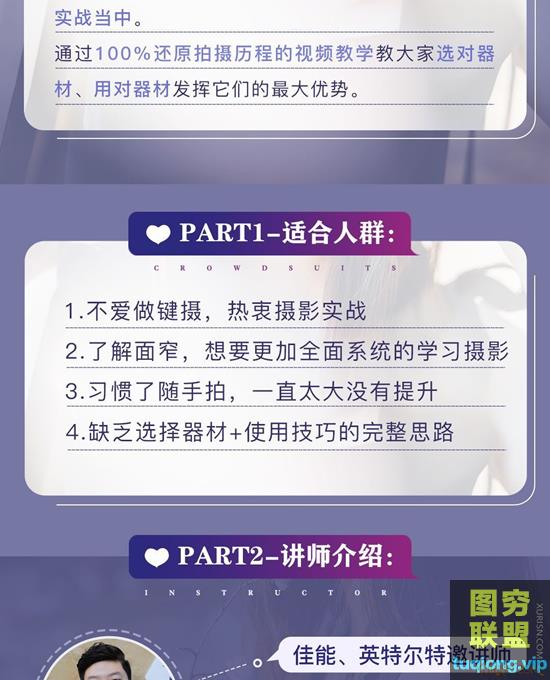 通过100%还原拍摄历程的视频教学教大家选对器材、用对器材发挥它们的最大优势。