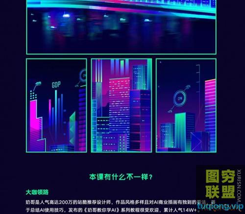 图穷联盟PS素材 » 高高手[奶哥] AI商业插画:炫彩科技风格插图绘制