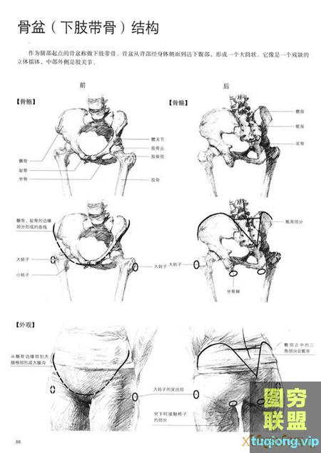 画人物的基本,要从了解人体本身的构造开始。隆起的肌肉固然重要,但绘制出细腻的外形和优美的身躯是素描追求的目标。因此,要想画出白然、栩栩如生的人体素描,必须要对构成人体基本的骨骼形状和关节活动有很好的了解。