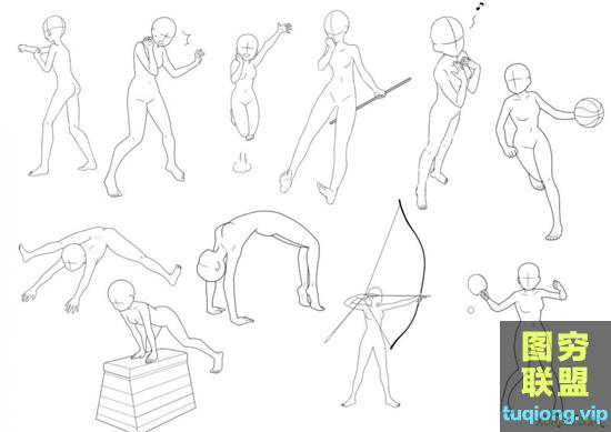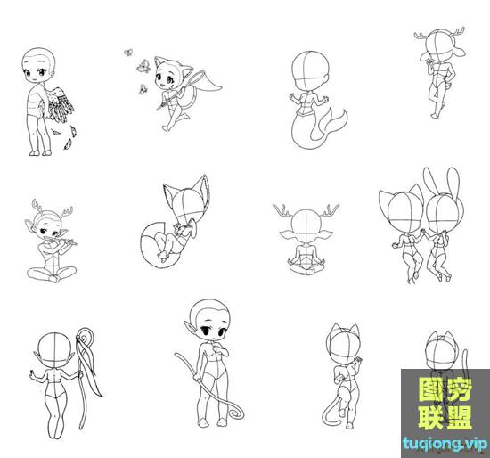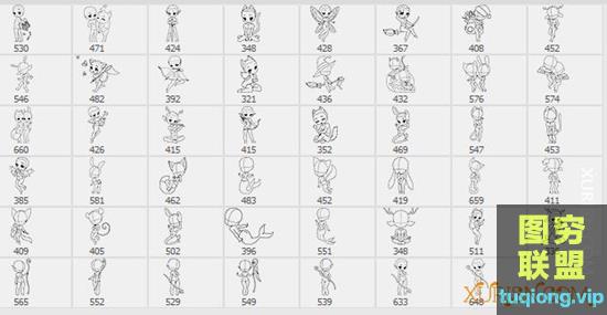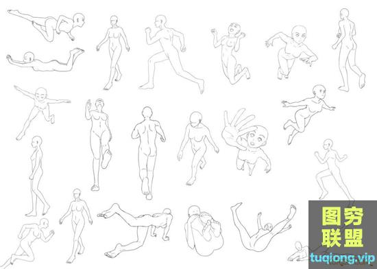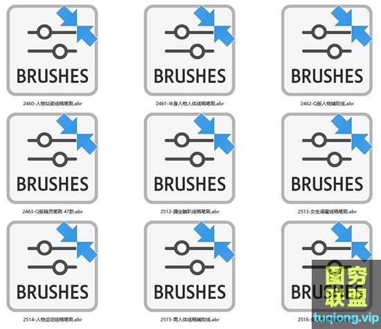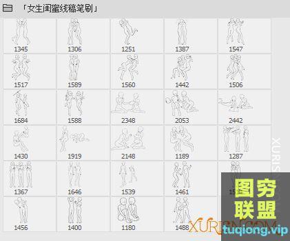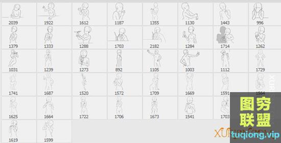 图穷联盟PS素材 » 745个男女人体卡通Q版辅助线稿笔刷合集(PS笔刷+procreate笔刷)