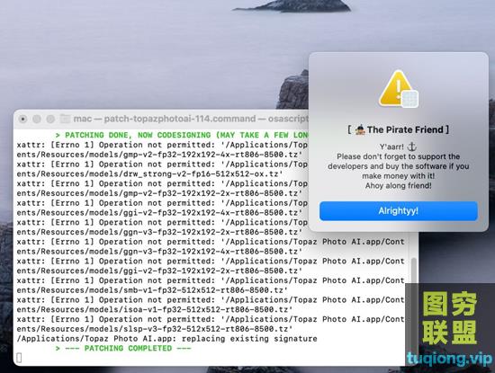 安装结束后,运行相关文件,一定要等到下面界面出现后点击蓝色按钮,才能够完整激活,如果你是M1系统,有可能还有关闭SIP