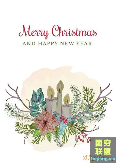 图穷联盟PS素材 » 8款圣诞节水彩贺卡矢量图合集Merry Christmas Watercolor Greeting Card