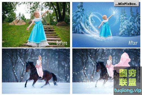 图穷联盟PS素材 » 高清奇幻冰雪魔法雪花PNG透明层合成叠加素材Snow Magic Overlays