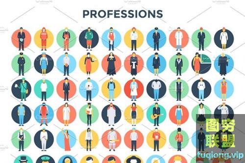 50 Flat Professions Vector Icons 50个扁平职业矢量图标